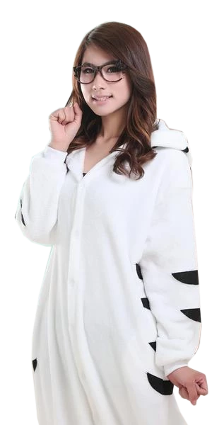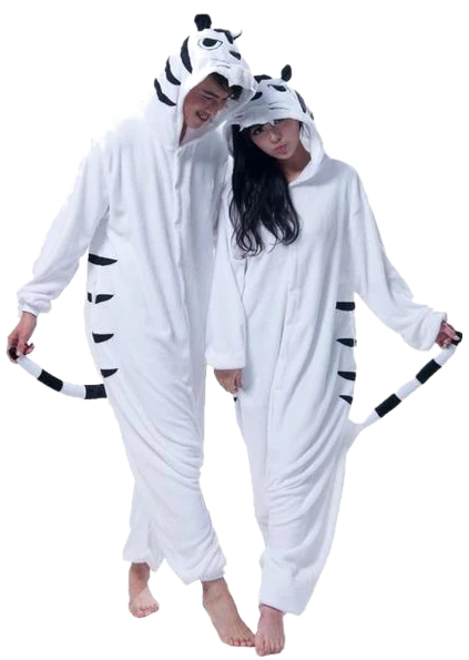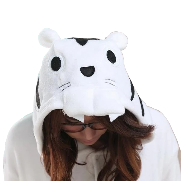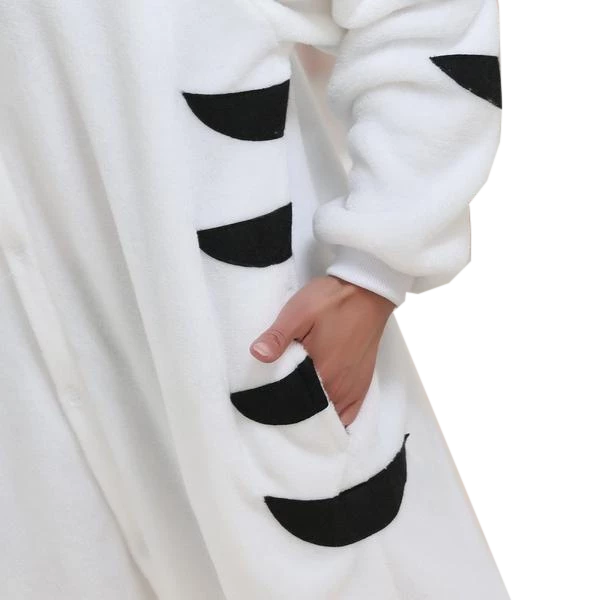 Just as real white tigers have the characteristic black stripes on a white or near white coat, the Adult White Tiger Onesies also sport these eye-catching designs along the arms, waist, and tail. unlike the real deal though, these super cute pajamas promise to keep you warm during cold winter nights, cocooned in everything silky soft, comfortable and homey.