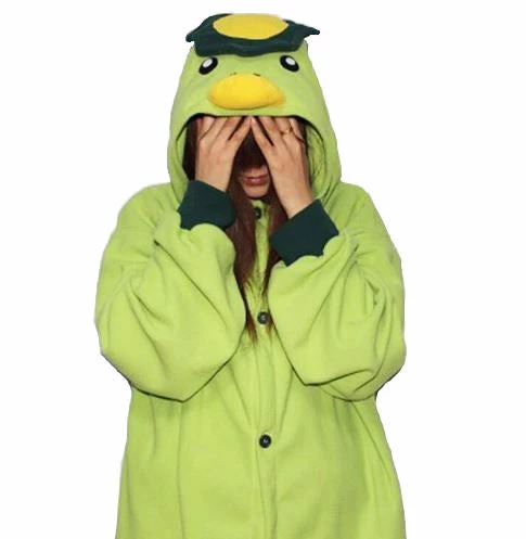 | Design and Style | Symmetrical features on the hood, long sleeves, elastic wrist and ankle cuffs, baggy, button front closure, side pockets, turtle shell design at the back, kigurumi shoes not included |