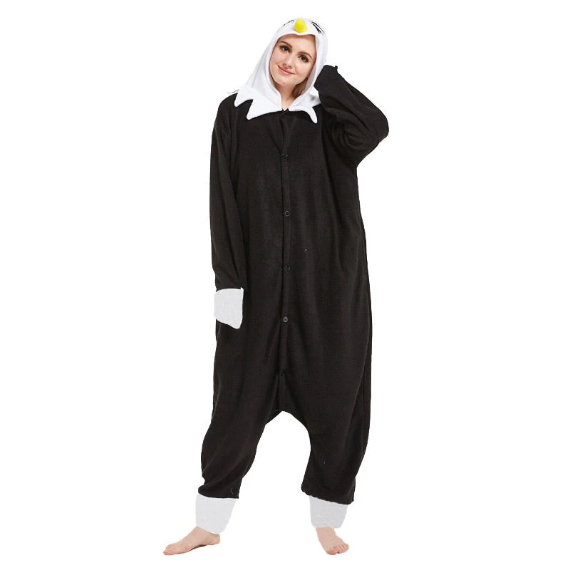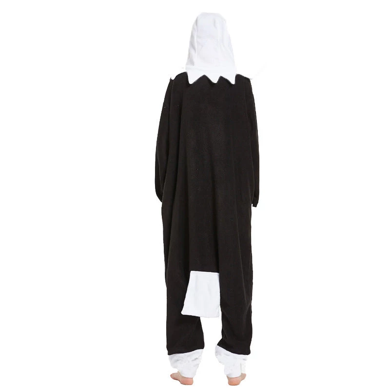 Bask in the spotlight with our Fierce Black Eagle Onesies which will surely delight your senses. This black Kigurumi suit is complemented with a white hoodie that has symmetrical facial features of a fierce eagle. You will also love that it has a white flappy tail that will add to your eagle-like attitude.
