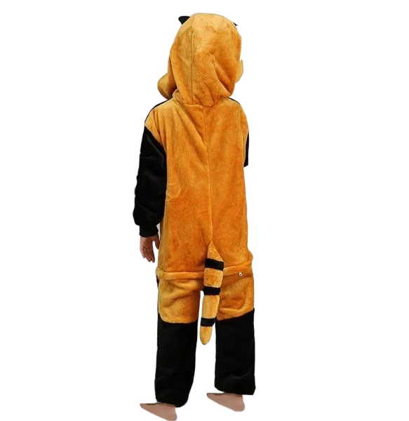 | Design and Style | Full-sleeved raccoon-style onesie with symmetrical features on the hood, button front closure, elastic wrist and ankle cuffs, back zipper, and a tail |