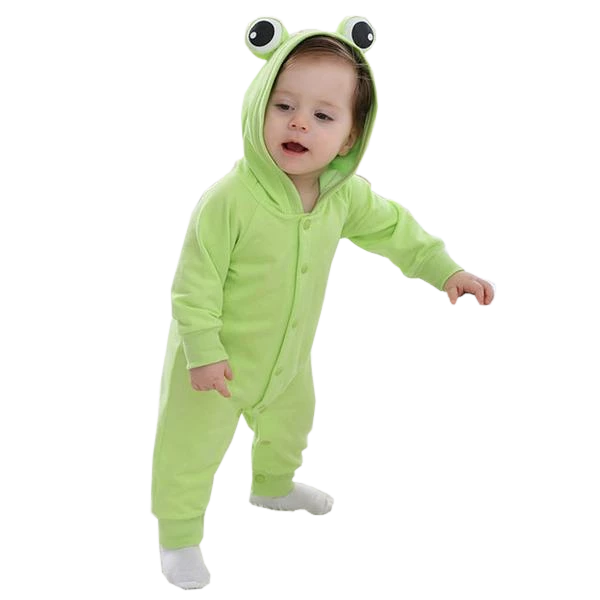 | Design and Style | Full-sleeved frog-style romper with symmetrical features on the hood, elastic wrist, and ankle cuffs and a button front closure |