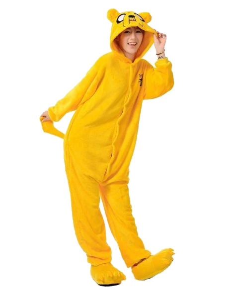 Our Jake the Dog Onesies have brought this amazing character to life. Made from premium grade polyester, it will definitely be a very snuggly outfit that you can wear even in cold weathers. The baggy design of this overalls will make it your go-to outfit anytime you want something roomy and stylish at the same time. It also features side pockets for you to put all your necessities when you don’t feel like bringing a bag with you. The button front closure of this outfit will help to change into this outfit very easily. The elastic wrist and ankle cuffs will enable you to adjust the sleeves according to the length that you want. The adorable hood features Jake’s a very realistic mouth, eyes and even has the poking ears! And, let us not forget the delightful jake tail at the back that helps make the outfit come together wonderfully!