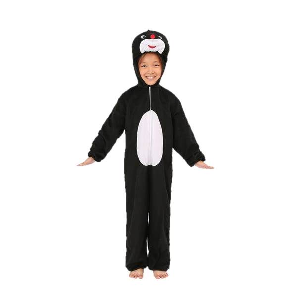 | Design and Style | Long-sleeved mole-mouse-style onesie with symmetrical features on the hood, white belly, front zipper closure, and elastic cuffs |