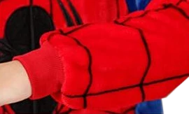 | Design and Style | Baggy, full sleeved Spiderman superhero costume style with Spiderman logo, elastic wrist and ankle cuffs, hoodie with symmetrical features, full front zipper closure, crotch zipper |