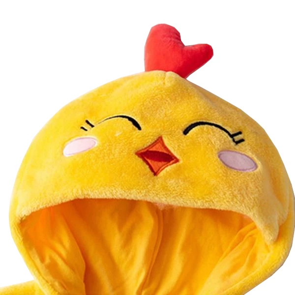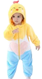 When you see the Cute Baby Chicken Onesies for the first time, you will notice two dominant colors – yellow on the upper half and blue on the lower half. However, upon closer inspection, you will also see that in the middle of the onesie, right where the yellow and blue colors meet, you can find a pink heart over a white center. These onesies have full sleeves but do not come with a pair of Kigurumi shoes. For easy opening and closing, there are zippers on both the front and back parts of the Cute Baby Chicken Onesies. There is also a hoodie that features the chick’s face. And to complete your baby’s transformation into the cutest chick ever, you can find a yellowtail at the back and a red “comb” on top of the hoodie.