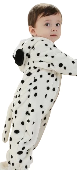 | Design and Style | Long-sleeved snow leopard-style onesie with symmetrical features on the hood, elastic cuffs, front zip closure, and a tail |