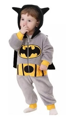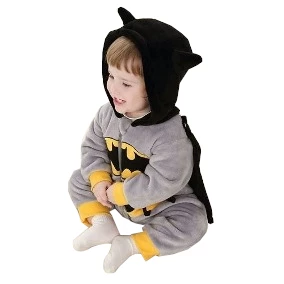 When purchasing the Cute Batman Onesies, you would be getting a full sleeve garment in gray. The onesies come with an easy to open zipper front closure. The Batman onesies also have yellow colored elastic cuffs on the wrists and ankles. To complete your little one’s transformation into baby Batman, don’t forget about the black hoodie and cape that the onesies come with. As an added detail, there’s the black Batman logo that sits on the middle of a yellow background right on the center of the onesies.