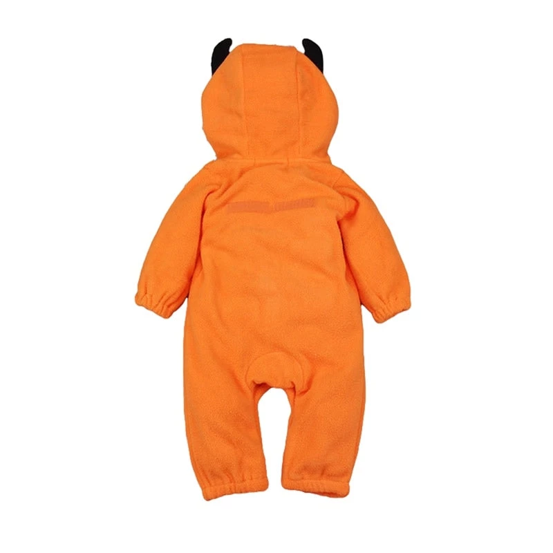 An adorable, little spooky pumpkin face is placed on the front for an added effect. The hood comes with cute devil horns as well to make your baby scarier or cuter (in this case).