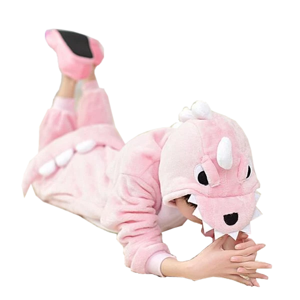 This adorable, light pink kiddie dinosaur onesie is absolutely a sight to behold. Our cute kiddie dinosaur onesie is made of flannel, a material perfect for daily wear. Your kids can wear them in costume and Halloween parties. They will be fresh and comfy. Our kiddie dinosaur onesie has a back zipper for bathroom convenience.