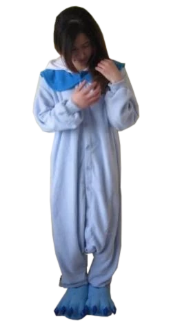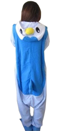 | Design and Style | Onesie: Hooded penguin-style with full sleeves, elastic wrist and ankle cuffs, and a button front closure, without kigurumi shoes Sweater: Long sleeved, penguin-style hoodie with a front zipper and side pockets |