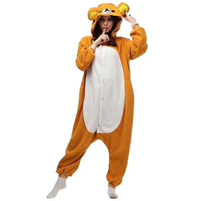 Aside from that, you’ll really start to feel like Rilakkuma thanks to the onesie’s design! The body of the garment is a light brown color with elastic wrist and ankle cuffs for a better fit. Side pockets on both sides of the onesie can be used to store in some snacks, money, your phone, or other essentials if you need a quick trip to the grocery store. That’s convenience, comfort, and style all in one! The white belly features a full front button closure along with a full zipper closure at the back; there’s a fluffy round tail at the bottom of the zipper, too! To really impersonate the look of Rilakkuma, slip on the hoodie complete with the beloved bear’s facial features and even an adorable set of ears!