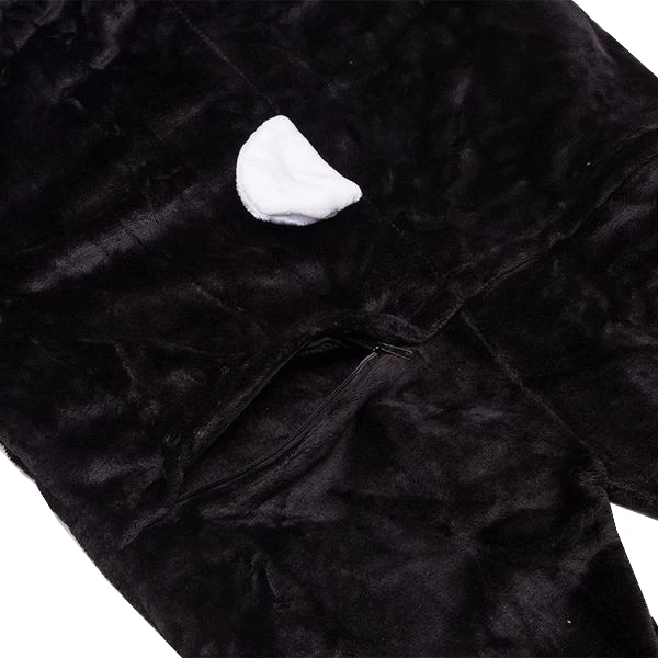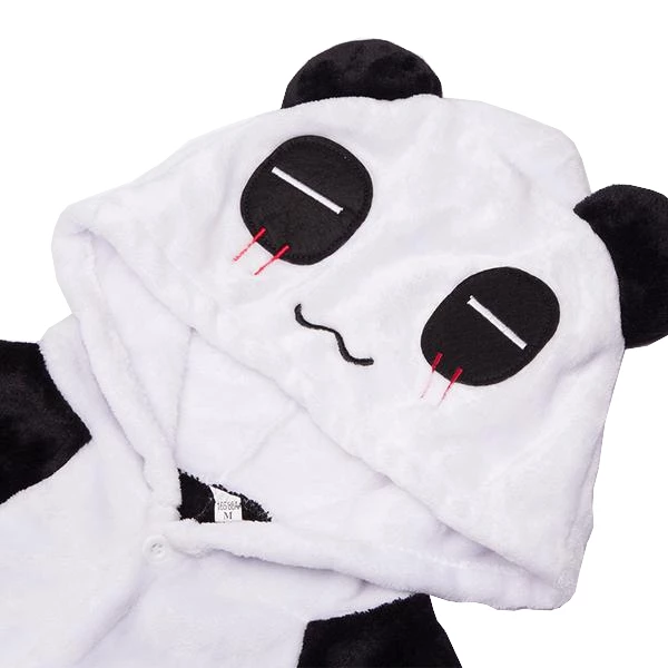 | Design and Style | Long-Sleeved and Baggy Panda Style Onesie with Symmetrical Features on the Hood, White Belly, Small Panda Tail, Elastic Cuffs, and Button Front Closure |