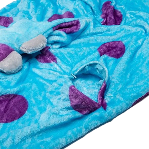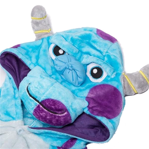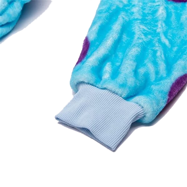 | Design and Style | Hood with Sulley head design, Button front closure, Elastic cuffs, Side pockets, Horizontal back zipper at the hips, Tail with gray rounded spikes, Gray underbelly. |