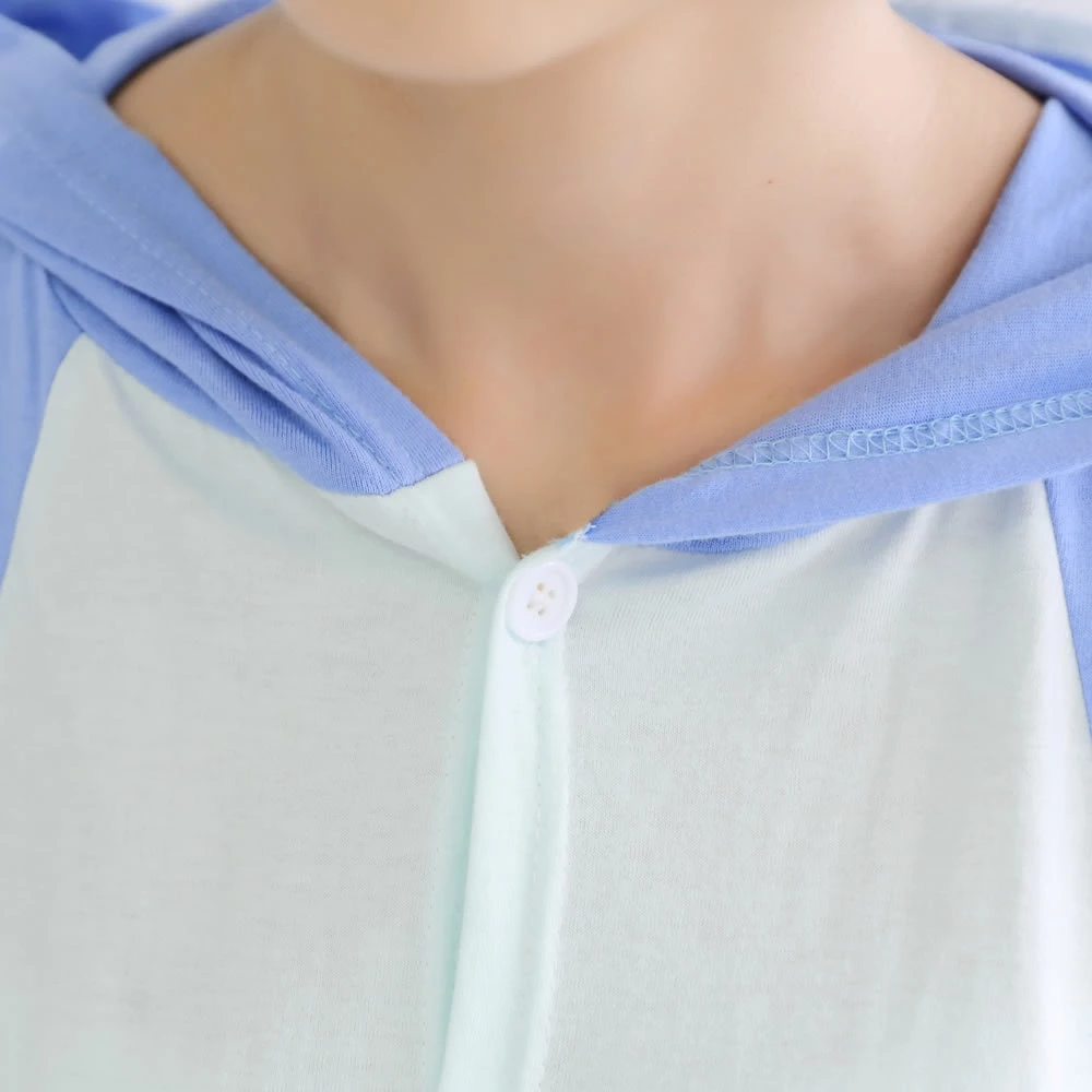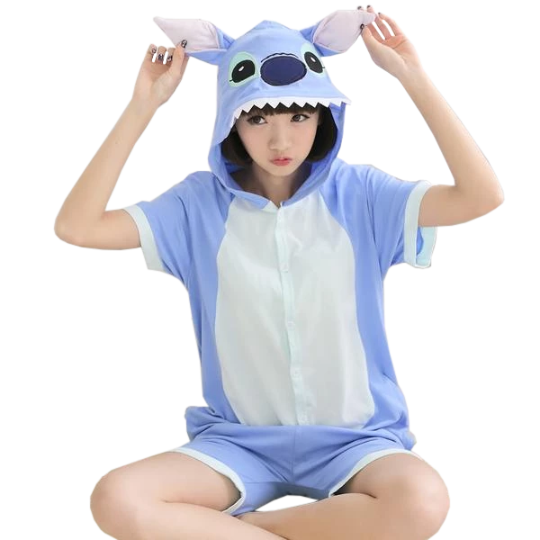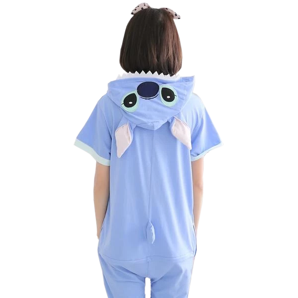 | Design and Style | Short-sleeved, hooded Stitch-style onesie with a button front closure and side pockets |