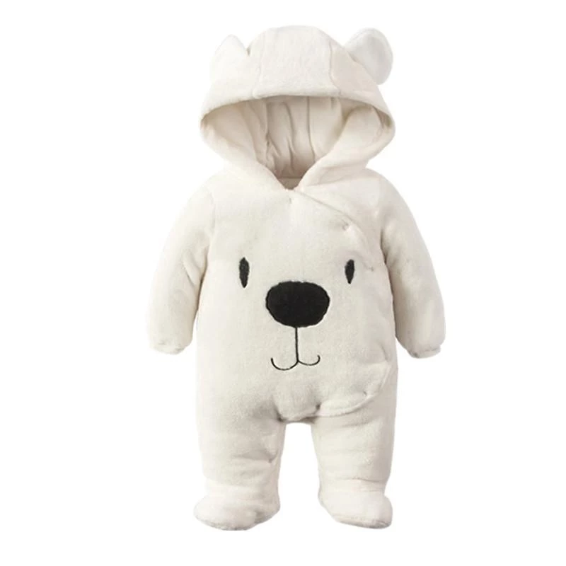 | Design and Style | Long-sleeved onesie with bear’s ears on the hood, bear’s face on the belly, snap-on buttons, and elastic wrist and ankle cuffs |