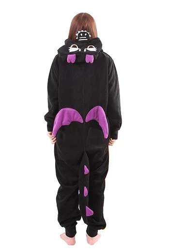 | Design and Style | Hood with purple ears, black spikes and sharp white teeth, Button front closure, Cute purple wings, Tail with purple spikes, without kigurumi shoes |