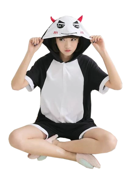 Are you feeling a little mischievous? Frolick under the heat of the summer sun with our devil onesie. Our devil onesie is breezy and comfortable. This onesie has a cute little horn on the hoodie, small red wings at the back and a matching pointed tail. Our onesie is made of cotton and is perfect as streetwear.