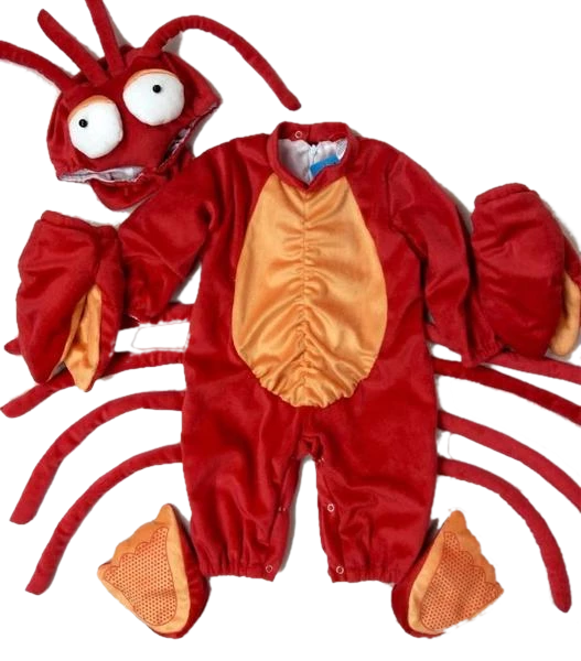 | Design and Style | Separate lobster headdress design, mittens and shoe cover, Lobster bodysuit with button opening at the leggings, orange underbelly |