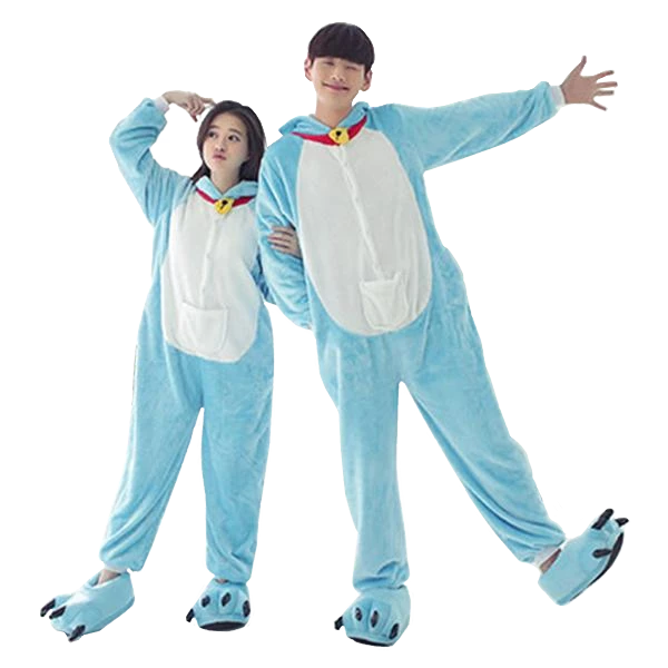 Our Doraemon Cat Onesies are made from high-quality flannel fabric that has a very soft texture. The hood has all the symmetrical facial features of Doraemon including his famous smile. Each piece is mirrored from his hues of blue and white. Completing the perfect Doraemon onesie is a red round tail and a super cute collar with a yellow bell. The elastic wrist and ankle cuffs will leave you worry-free during activities. If you are taking a break in between adventures, its horizontal back zipper will give you peace of mind. Ready to take the whole gang with you? Gather them up and take a trip around town. The unparalleled versatility of this Doraemon Cat Onesie will take you to great places! Get ready to grace every party because this cute Kigurumi is your unlimited invite to your friends’ parties.
