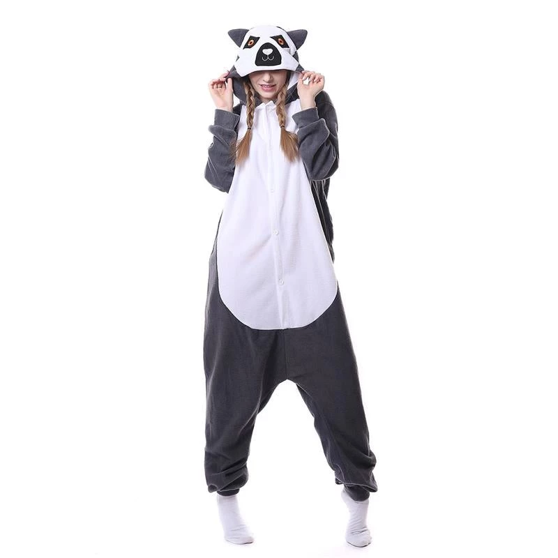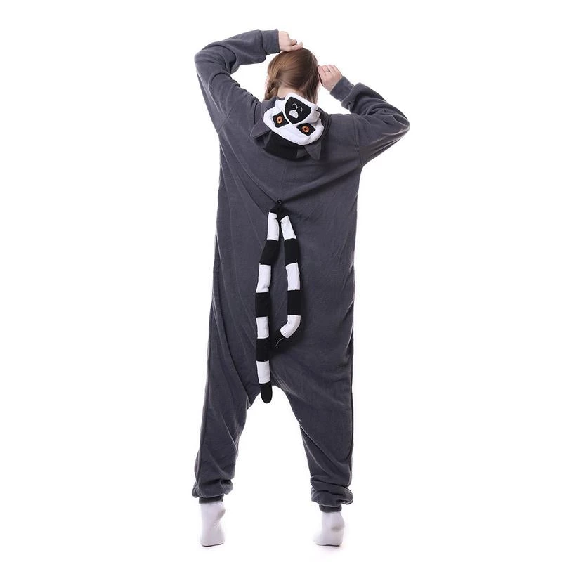 Pave the way to animal onesie fashion with our Jenny Lemur Onesies. Each lemur onesie is a gray bodysuit with a white underbelly, which is where you’ll find the full front button closure. At the back is where you’ll also find the really long lemur tail; it’s so long that you can let it hang against your shoulder! If the tail is too long for you, you can attach one half of it using the button found the middle back of your onesie. To look like the unique wide-eyed animal, slip on the hoodie which features the lemur’s facial characteristics including a pair of ears sticking out. Show off your oddly adorable onesie and pretty soon, lemur onesies will be taking over the world!