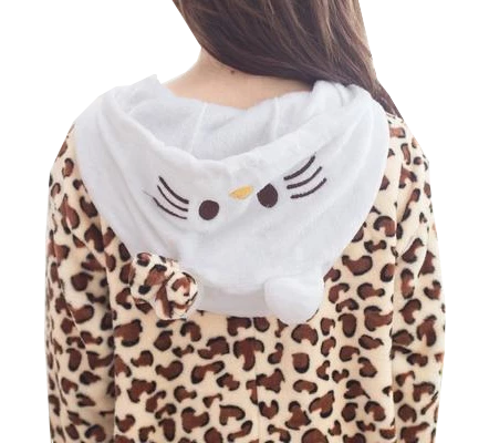 Be a feisty feline in this onesie. The hoodie is designed with cute whiskers and a matching bow. Our Jenny Leopard onesie will provide you with ultimate comfort and warmth. It is smooth and fluffy. It is made from polyester and is perfect for winter and cold nights. This full sleeved jumpsuit was first popular in Japan, this animal onesie style hopped over the sea, and now the suits have legions of fans worldwide. It’s lightweight and baggy material is designed to keep the heat in and keep you warm and cozy at all times. The elastic cuffs for the wrist and ankle are adjustable according to your style.