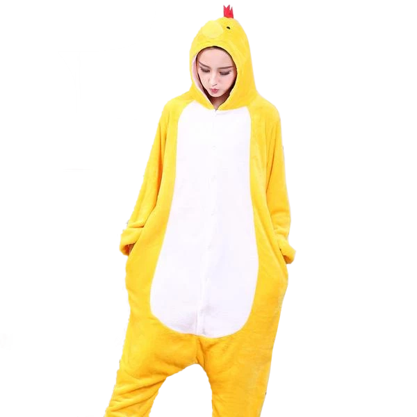 Our Yellow Chicken Onesies can give you the snug and comfort that you need during the not-so-warm and not-so-cold months. That is because this Kigurumi is made from flannel. This fabric is extracted from different materials, such as cotton, synthetic fiber, and wool. Hence, our chicken onesies are ideal for Spring and Autumn.